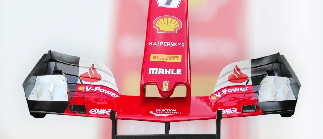 Crafted utilizing epoxy resin and fiberglass, this is a 1:1 replica of an F1 nose cone and front air deflector.